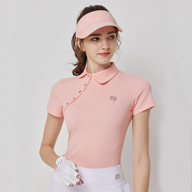 スポーティーかつ女性らしいポロシャツは柔らかな生地で動きやすく、汗をかいてもサラッと快適。