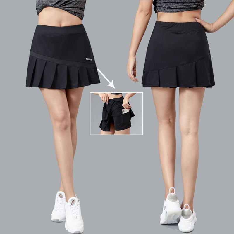 プリーツスカートとレギンスが一体になった機能的デザインで、動きやすさを追求。