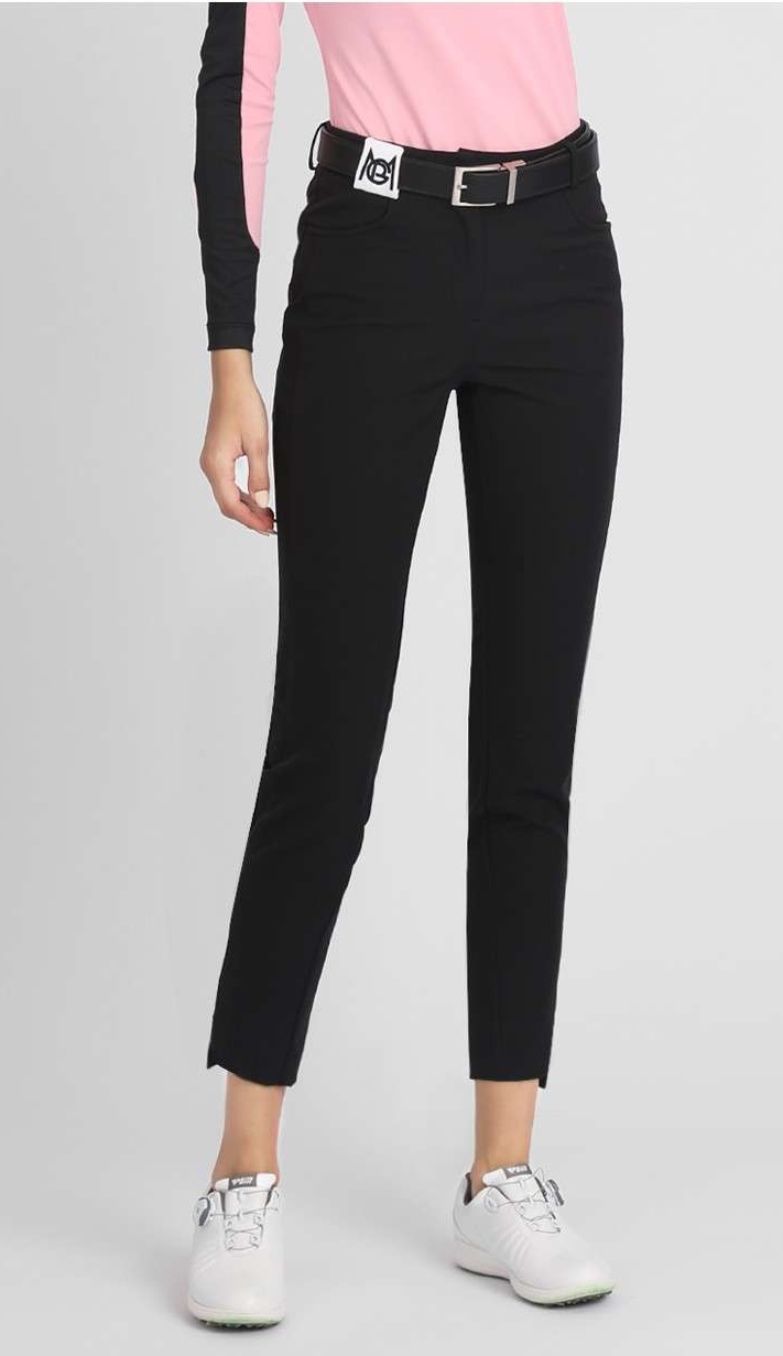 レディーススポーツウェアの定番ボトムス。ストレッチ素材で自由な動きをサポートするゴルフ用ロングパンツ。