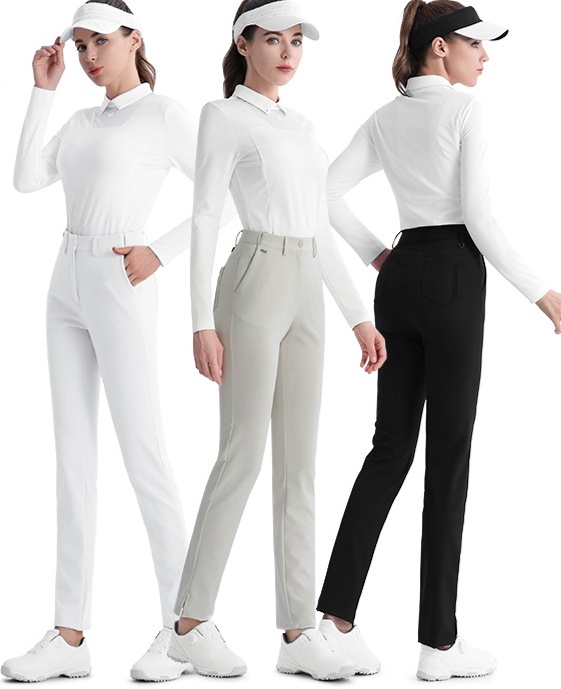 ストレッチ素材で自由な動きをサポートする上品なロングパンツ。