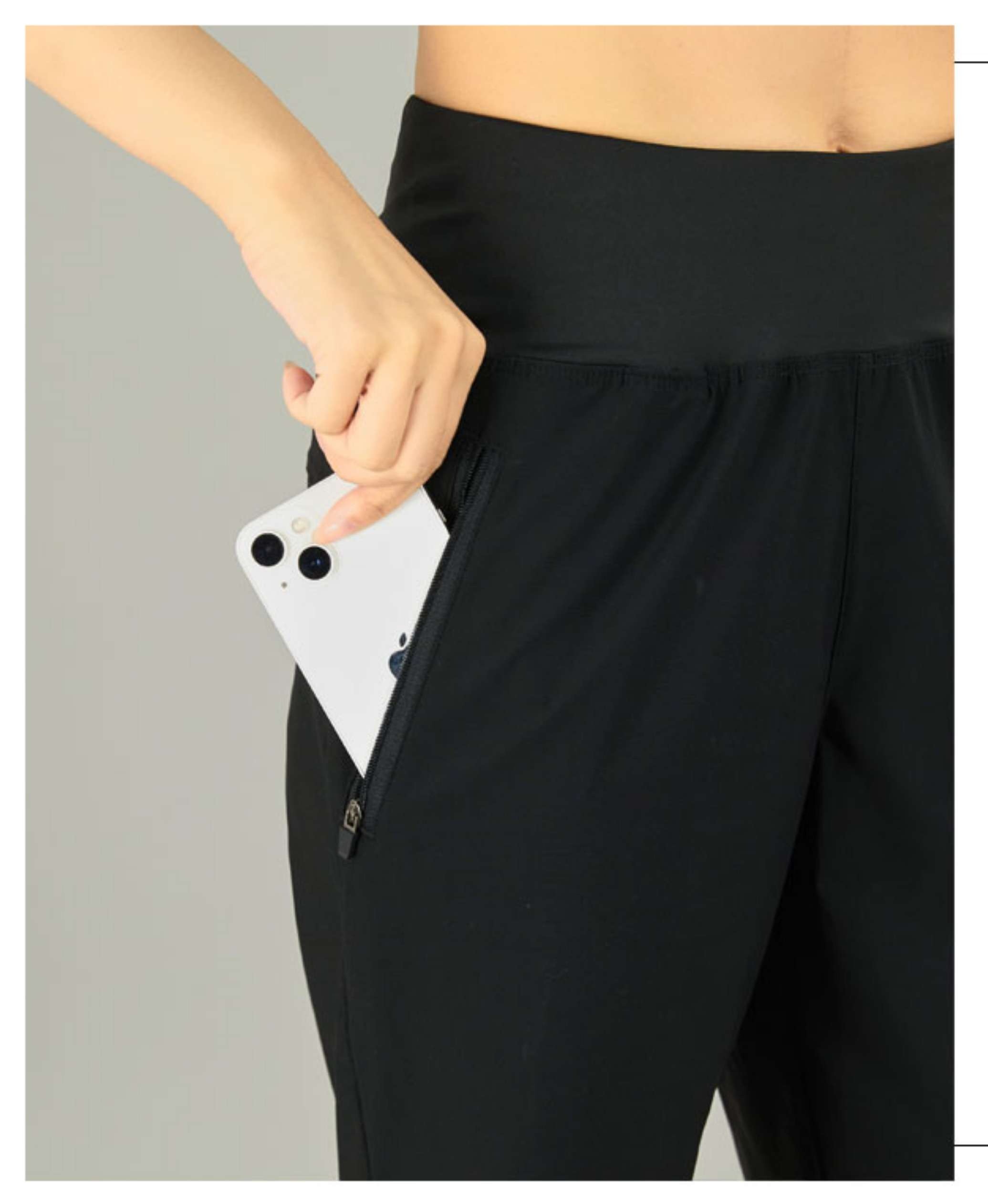サイドにジッパーポケットが備わっており、スマートフォンや小物の収納に便利です。